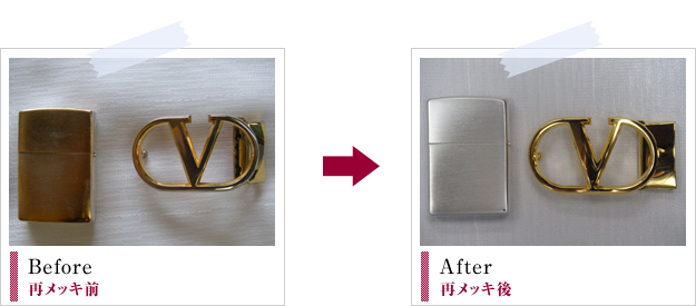 鞄の金具やベルトのバックルなどでも、取り外せるものであれば再メッキ可能です。